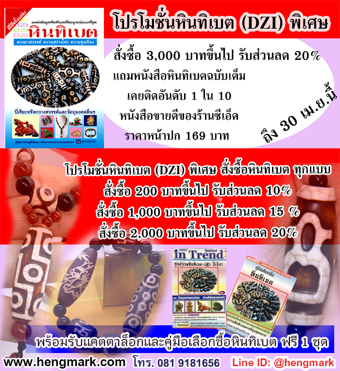 DZI Promotion 23 สั่งซื้อ 3,000 บาทขึ้นไป รับส่วนลด 20% แถมหนังสือหินทิเบตฉบับเต็ม เคยติดอันดับ 1 ใน 10 หนังสือขายดีของร้านซีเอ็ด ราคาหน้าปก 169 บาท ถึง 30 เม.ย.นี้ |