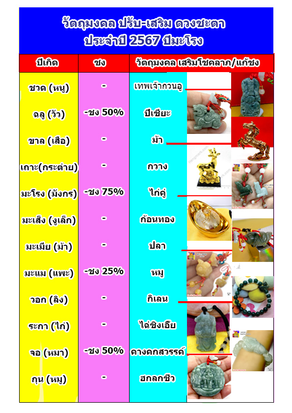 วัตถุมงคลแก้ชง-เสริมดวง ปี 2567 |