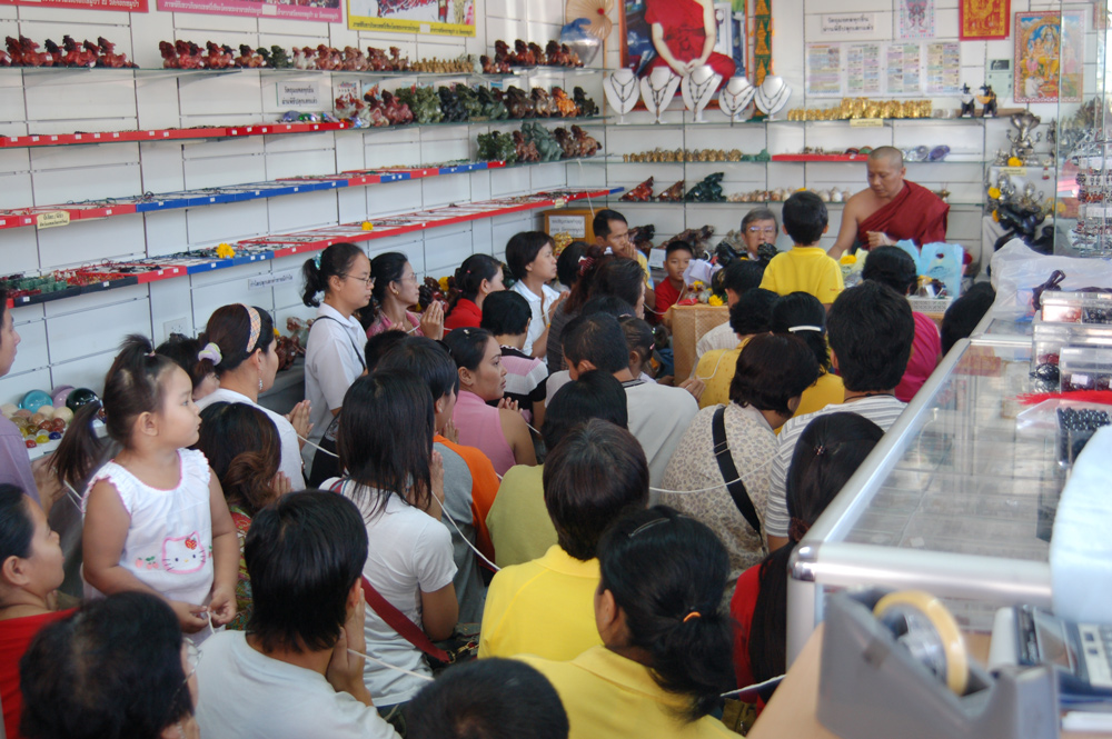 ต่อมา ทางร้านได้รับความเมตตาจากหลวงตาแฉล้ม วัดบางพูดใน อ.ปากเกร็ด จ.นนทบุรี เป็นผู้ปลุกเสกให้