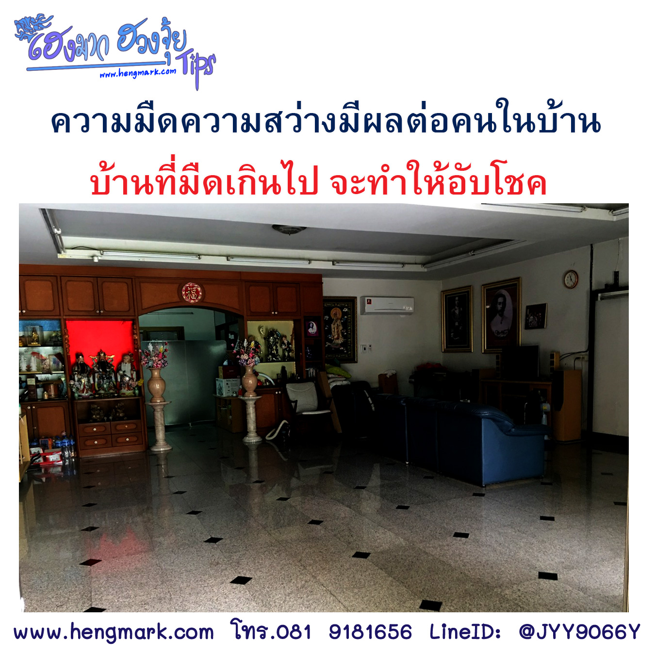 ตามหลักหยินหยาง หลักแห่งความสมดุลย์ บ้านที่มืดเกินไปจะส่งผลให้คนในบ้านเฉื่อยชา ขี้เกียจ ง่วงเหงาหาวนอน อับโชค ทำให้เงินทองไม่ไหลเข้าบ้านเท่าที่ควร